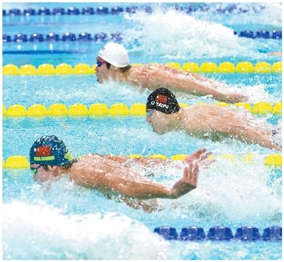 運動員在十五運會游泳項目男子100米蝶泳決賽中。