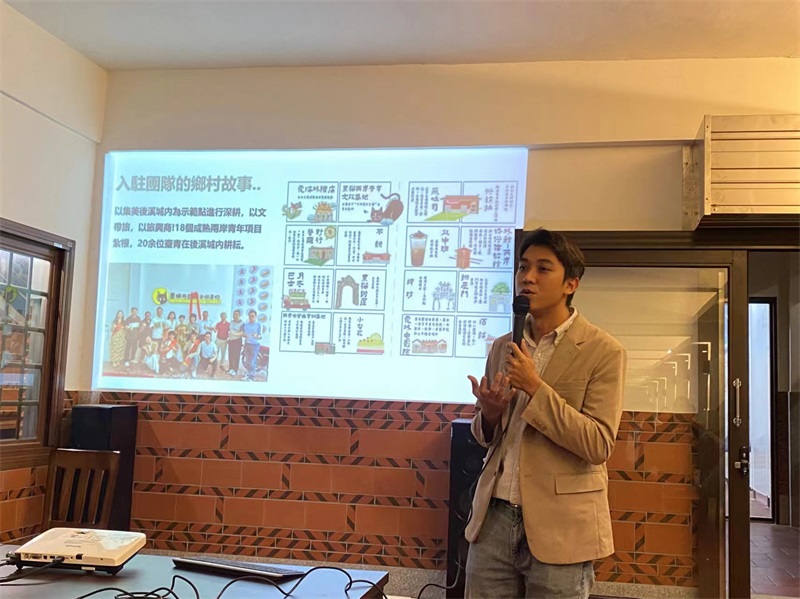 吳炳璋分享鄉(xiāng)村的故事。受訪者 供圖 東南網(wǎng)2月5日報道(記者 盧金福)近日,30多名兩岸青年在廈門集美區(qū)城內(nèi)不耕小院和大師工作坊兩地一起享受了一場氛圍感和煙火氣滿滿的迎新春活動。在福建創(chuàng)業(yè)奮斗的臺灣青年、黑貓兩岸青年文旅基地執(zhí)行長吳炳璋等臺青們還走進(jìn)城內(nèi)村村民家中將書寫的“福”字贈送給城內(nèi)的居民,與他們分享新春的喜悅與祝福。來到大陸創(chuàng)業(yè)6年來,吳炳璋帶領(lǐng)兩岸青年走進(jìn)鄉(xiāng)村,開展文旅融合、空間改造、制作短視頻等活動,挖掘風(fēng)俗、村史、美食等,幫助大陸鄉(xiāng)村挖掘文化,實現(xiàn)鄉(xiāng)村振興。