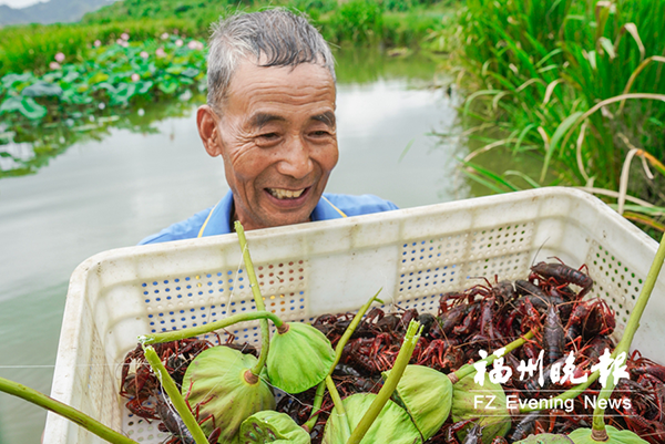 中房長晟立體農業綜合種養基地的高品質小龍蝦在市場上供不應求。 荷田唱響生態歌 “蓮蝦雙收”效益高 處暑一過,海拔580米的滿盾村,時有清風徐來。在中房長晟立體農業綜合種養基地里,遠處的山坡地種植有果蔬和茶葉,但最吸引眼球的還是約800畝荷花田,粉白的荷花在一片碧綠中迎風搖曳。 “我們在荷花田里生態套養小龍蝦,實現一田雙收!”基地的經營者鄭長鳴說。沿著基地的木棧道,他帶領記者走向荷花田深處,只見一名工人正駕駛小船在荷花叢中忙碌,等他靠岸時,肥美的小龍蝦已在蝦筐里“張牙舞爪”。 笑臉、龍蝦、荷花,共同構成了一幅生動的豐收畫卷。鄭長鳴來自外地,能夠扎根滿盾村創業,是因為當地良好的生態條件吸引了他。“整個中房鎮沒有工業企業,青山環繞,水質好,特別是這片荷花田,周邊還能接入山泉水,為農漁綜合立體養殖創造了很好的條件。”鄭長鳴說。 好生態環境出好蝦,憑借著底板白、腮白、肉白、蝦膏多、肉多的“三白兩多”,中房長晟立體農業綜合種養基地的高品質小龍蝦面市后,迅速打開了市場,暢銷寧德、福州,供不應求。目前基地有約800畝荷花田,小龍蝦生長期一般在3月至9月,每年可收獲兩季,一年下來可產10萬公斤小龍蝦,扣除成本,一年收益百來萬元。 “荷蝦共生”模式,見證著滿盾村產業發展的迭代升級。卓成斌告訴記者,滿盾村原以茭白種植聞名,但前些年隨著產業效益降低,村民開始外出打工。“蓮蝦雙收”釋放生態經濟效益后,村民被吸引重新返鄉。 “鄭長鳴傳授經驗,提供蝦苗,參與技術指導,幫忙代購代銷。”陳芳告訴記者,目前在滿盾村,有十幾戶村民跟著鄭長鳴從事“蓮蝦”養殖,年均收入增加2萬元左右。同時,中房長晟立體農業綜合種養基地在農閑時節提供務工崗位,帶領村民共同致富。