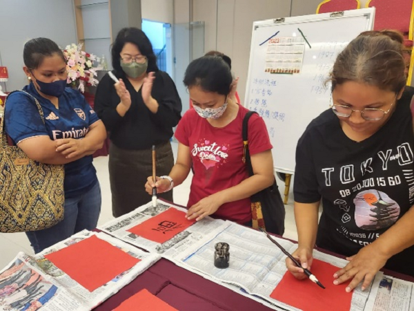 “清新福建下午茶”主視覺畫面 “清新福建下午茶”活動(dòng)是由福建省文化和旅游廳組織各福建文化海外驛站策劃打造的品牌活動(dòng),旨在以茶為媒,讓海外友人親身體驗(yàn)福建民俗、非遺、文化等獨(dú)特的文旅資源,增進(jìn)海外民眾對(duì)福建的了解,共享“各美其美、美人之美、美美與共、天下大同”的中國文化理念。 活動(dòng)現(xiàn)場(chǎng),福建文化海外驛站·馬來西亞站邀請(qǐng)嘉賓以毛筆書寫“春”或“福”字。當(dāng)?shù)赜讶藢?duì)書法及漢字表現(xiàn)出濃厚的興趣, 現(xiàn)場(chǎng)認(rèn)真臨摹、書寫,并興致勃勃拿著作品合影留念。