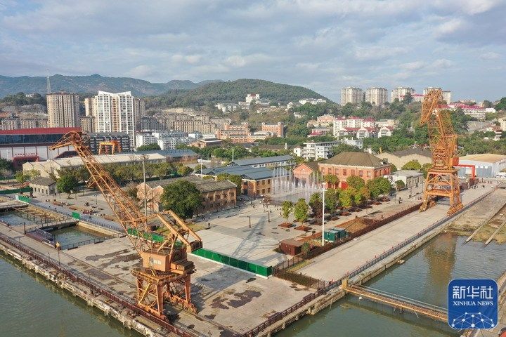 2月12日,中國船政文化城核心區船廠片區一角(無人機照片)。