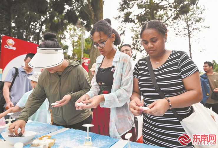16日,福州鼓嶺旅游度假區舉行中秋特色文化活動。福建醫科大學海外教育學院的20多名留學生與鼓嶺居民一同制作月餅,體驗傳統民俗。本報記者 游慶輝 攝