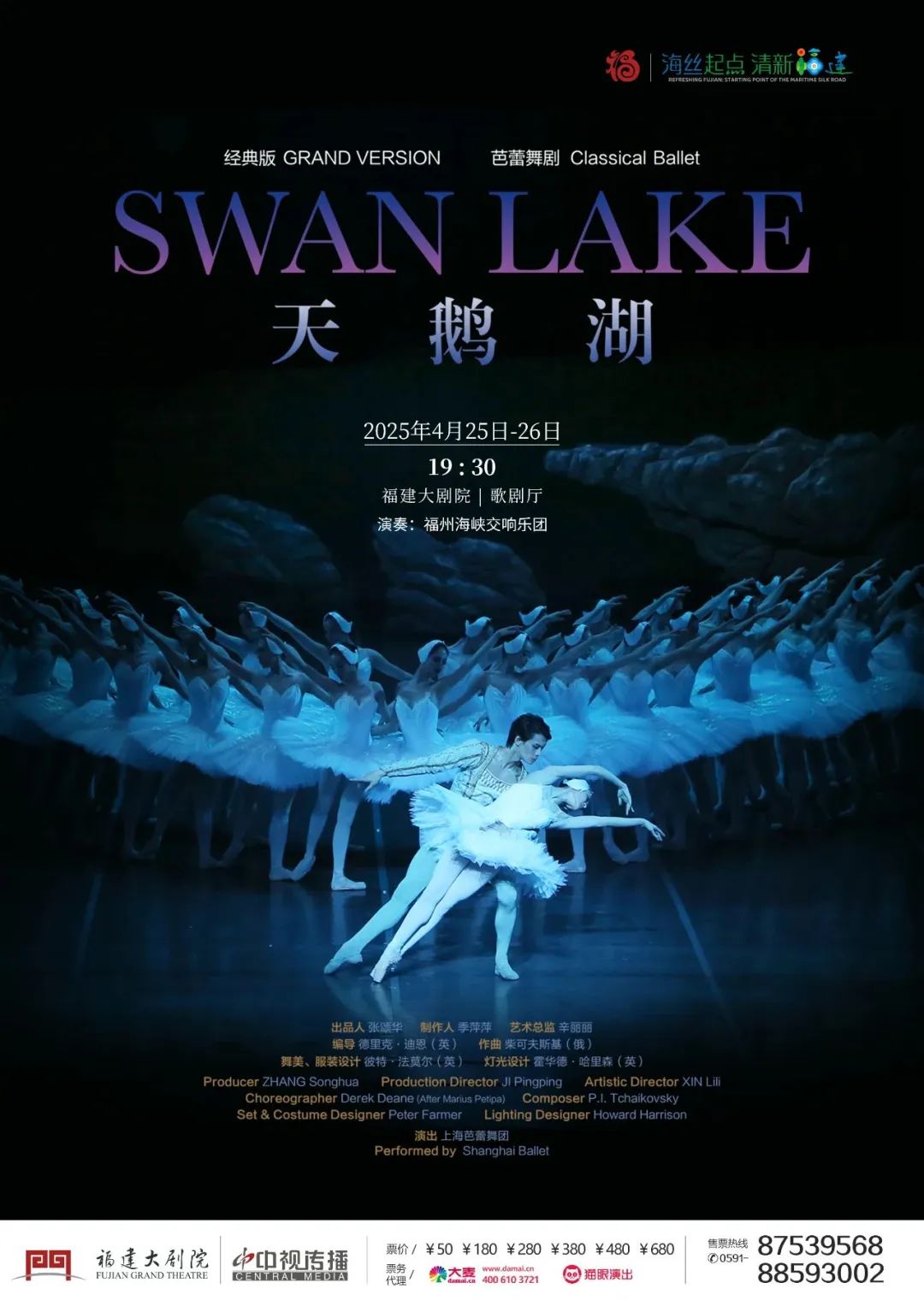 上海芭蕾舞團經典版芭蕾舞劇《天鵝湖》 時間: 4月25、26日 19:30 地點: 福建大劇院歌劇廳 演出單位: 上海芭蕾舞團、福州海峽交響樂團現場伴奏