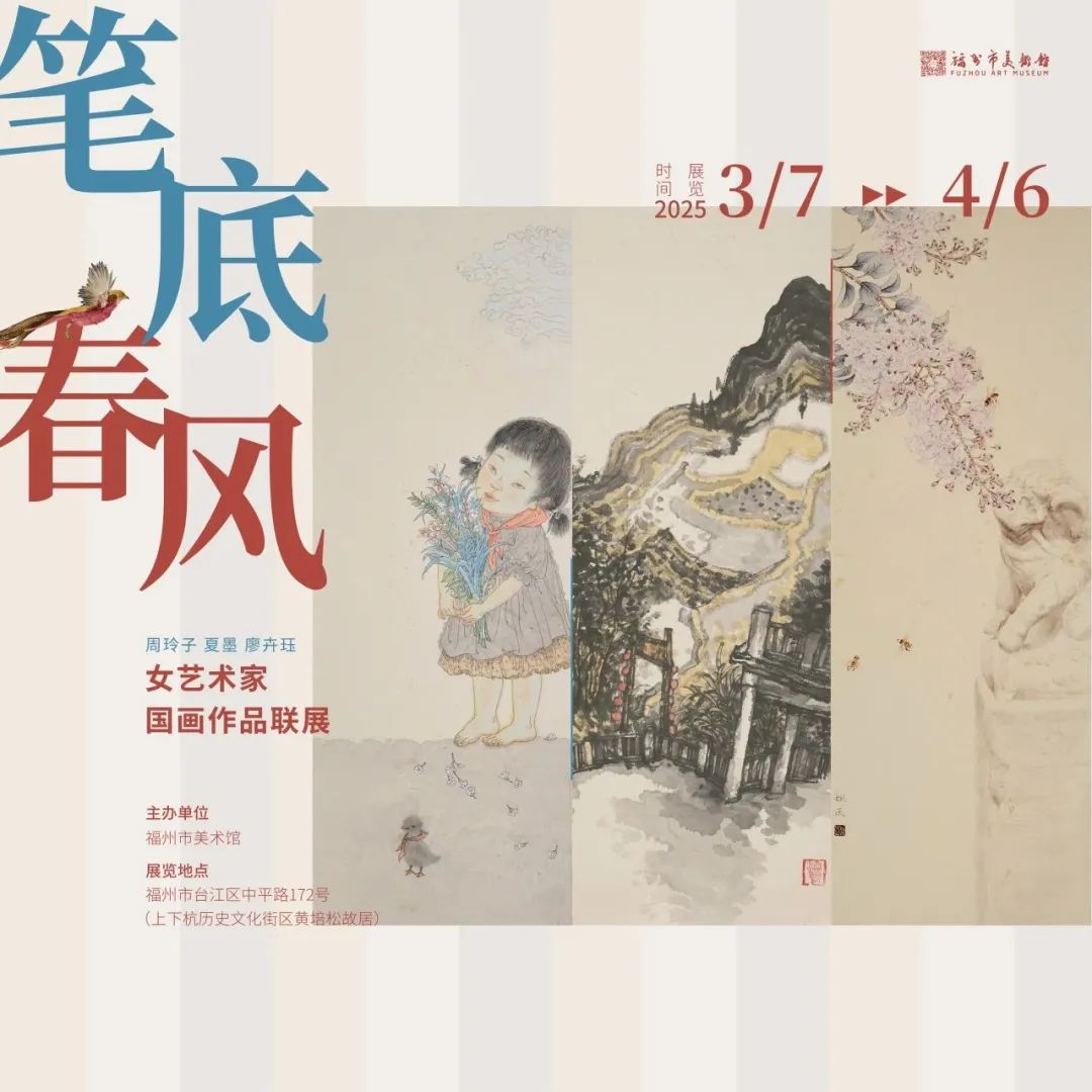筆底春風——女藝術家國畫作品聯展 時間: 3月7日-4月6日 地點: 福州市美術館 福州古厝寫生作品展 時間: 4月9日-5月5日 地點: 福州市美術館