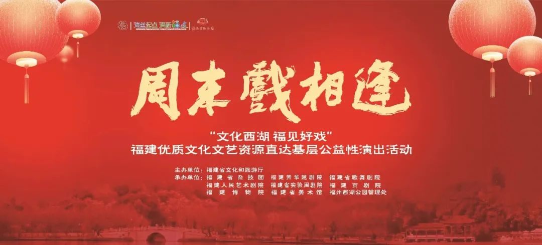 “周末戲相逢”福建優質文化文藝資源直達基層公益性演出活動 戲曲綜藝 時間: 4月5、6日10:00 演出單位: 福建京劇院 越劇綜藝 時間: 4月12、13日 演出單位: 福建芳華越劇院 《福秀·春》 時間: 4月19、20日 演出單位: 福建省歌舞劇院 閩劇綜藝 時間: 4月26日 演出單位: 福建省實驗閩劇院 地點: 福州西湖