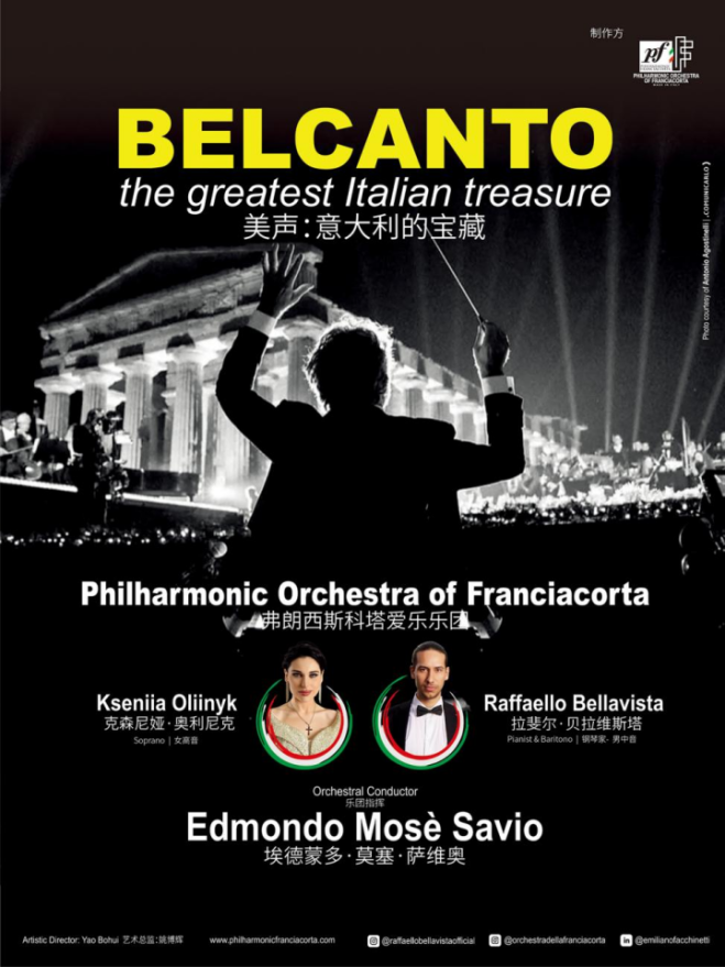 美聲:意大利的寶藏——拉斐爾·貝拉維斯塔、克森尼婭·奧利尼克與意大利弗朗西斯科塔愛樂樂團音樂會 時間: 4月22日 20:00 地點: 福州·海峽文化藝術中心 音樂廳 票價: 480/280/180/80元 購票渠道: “福州海峽文化藝術中心”微信公眾號