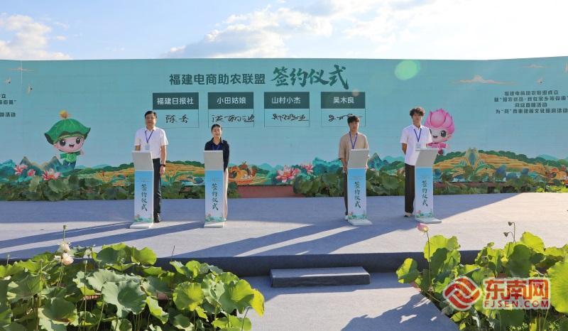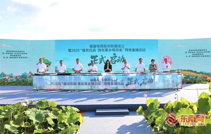 福建電商助農(nóng)聯(lián)盟成立暨“福農(nóng)優(yōu)品?我在家鄉(xiāng)等你來”網(wǎng)絡(luò)直播活動(dòng)正式啟動(dòng)。 東南網(wǎng)8月13日訊(本網(wǎng)記者 盧金福 傅心婕 肖曉敏 文/圖)為深入貫徹落實(shí)習(xí)近平總書記關(guān)于“三農(nóng)”工作的重要論述和對(duì)網(wǎng)信工作的重要指示精神,大力實(shí)施《數(shù)字鄉(xiāng)村發(fā)展戰(zhàn)略綱要》,進(jìn)一步推動(dòng)農(nóng)村電商高質(zhì)量發(fā)展,8月13日,福建電商助農(nóng)聯(lián)盟成立暨“福農(nóng)優(yōu)品?我在家鄉(xiāng)等你來”網(wǎng)絡(luò)直播活動(dòng)、為“荷”而來建蓮文化旅游活動(dòng)在三明市建寧縣啟動(dòng)。活動(dòng)將開展系列數(shù)字強(qiáng)農(nóng)惠農(nóng)富農(nóng)專項(xiàng)行動(dòng),以福建電商助農(nóng)聯(lián)盟成立為契機(jī),網(wǎng)聚各方力量,帶熱“福農(nóng)優(yōu)品”。 省委副書記、福州市委書記郭寧寧出席活動(dòng)并講話,省委宣傳部副部長(zhǎng)、省委網(wǎng)信辦主任、省互聯(lián)網(wǎng)信息辦公室主任申月,省委宣傳部副部長(zhǎng)、福建日?qǐng)?bào)社黨組書記、社長(zhǎng)陳輝宗,省農(nóng)業(yè)農(nóng)村廳黨組書記、廳長(zhǎng)陳明旺,以及省委辦公廳、省文旅廳、省人社廳、省商務(wù)廳、省婦聯(lián)、省廣播影視集團(tuán)、省農(nóng)村信用社聯(lián)合社、興業(yè)銀行、中國(guó)銀行福建省分行、中國(guó)建設(shè)銀行福建省分行、三明市、建寧縣相關(guān)負(fù)責(zé)同志出席活動(dòng)。 活動(dòng)現(xiàn)場(chǎng)亮點(diǎn)紛呈,舉辦了福建電商助農(nóng)聯(lián)盟成立儀式。該聯(lián)盟由省委網(wǎng)信辦牽頭,聯(lián)合省農(nóng)業(yè)農(nóng)村廳、省文旅廳、省婦聯(lián)共同指導(dǎo),福建日?qǐng)?bào)社(東南網(wǎng))、福建農(nóng)林大學(xué)、興業(yè)銀行等10家單位發(fā)起,匯聚MCN機(jī)構(gòu)、供應(yīng)鏈企業(yè)、金融機(jī)構(gòu)等多方力量,依托福建省特色農(nóng)產(chǎn)品和文旅資源優(yōu)勢(shì),構(gòu)建“政府引導(dǎo)+市場(chǎng)運(yùn)作+社會(huì)參與”的協(xié)同機(jī)制,借助數(shù)字技術(shù),形成數(shù)字鄉(xiāng)村強(qiáng)農(nóng)惠農(nóng)富農(nóng)、鄉(xiāng)村文旅深度融合、各類主體協(xié)同共建供應(yīng)鏈、文化產(chǎn)業(yè)賦能鄉(xiāng)村振興的立體化服務(wù)體系,推進(jìn)鄉(xiāng)村全面振興。