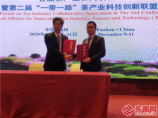 開幕式現(xiàn)場 福建農(nóng)林大學(xué)校長蘭思仁致辭 東南網(wǎng)記者張立慶 攝 東南網(wǎng)12月10日訊(本網(wǎng)記者 張立慶)2020年12月9日至12月11日,為了進一步推動茶產(chǎn)業(yè)協(xié)同創(chuàng)新、加強21世紀(jì)海上絲綢之路核心區(qū)建設(shè)和茶產(chǎn)業(yè)高質(zhì)量發(fā)展,共謀“十四五”茶產(chǎn)業(yè)高質(zhì)量發(fā)展新思路,12月9日至12月11日,首屆茶產(chǎn)業(yè)協(xié)同創(chuàng)新論壇暨第二屆“一帶一路”茶產(chǎn)業(yè)科技創(chuàng)新聯(lián)盟大會在福建省福州市召開,會議由協(xié)同創(chuàng)新院茶產(chǎn)業(yè)分院、“一帶一路”茶產(chǎn)業(yè)科技創(chuàng)新聯(lián)盟、福建省茶產(chǎn)業(yè)技術(shù)創(chuàng)新聯(lián)盟主辦,福建農(nóng)林大學(xué)園藝學(xué)院、福建省農(nóng)業(yè)科學(xué)院茶葉研究所、福建省種植業(yè)技術(shù)推廣總站承辦。 本次會議主題圍繞在“一帶一路”茶產(chǎn)業(yè)交流合作、茶產(chǎn)業(yè)協(xié)同創(chuàng)新、茶產(chǎn)業(yè)高質(zhì)量發(fā)展等關(guān)鍵詞。參會人員為“一帶一路”茶產(chǎn)業(yè)科技創(chuàng)新聯(lián)盟理事單位代表、協(xié)同創(chuàng)新院茶產(chǎn)業(yè)分院入駐企業(yè)代表、福建省茶產(chǎn)業(yè)科技創(chuàng)新聯(lián)盟理事代表、相關(guān)行業(yè)領(lǐng)導(dǎo)、專家和學(xué)者等。 會議由福建農(nóng)林大學(xué)鄭寶東副校長主持,福建農(nóng)林大學(xué)蘭思仁校長致開幕詞,福建省十一屆政協(xié)副主席、海峽兩岸茶業(yè)交流協(xié)會會長陳紹軍致歡迎辭,福建省農(nóng)業(yè)科學(xué)院院長翁啟勇致歡迎辭發(fā)言。會議首先由協(xié)同創(chuàng)新院茶產(chǎn)業(yè)分院執(zhí)行院長郭玉瓊作協(xié)同創(chuàng)新院茶產(chǎn)業(yè)分院工作報告,并舉行了協(xié)同創(chuàng)新院茶產(chǎn)業(yè)分院戰(zhàn)略合作單位簽約與入駐企業(yè)授牌儀式。