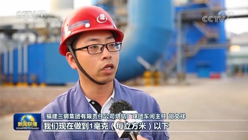 福建三鋼集團有限責任公司燒結廠球團車間主任 胡文祥: 國家超低排放的環保要求,粉塵濃度是10毫克(每立方米),我們現在做到1毫克(每立方米)以下。領先超低排放標準的5年以上。三鋼依托信息系統,累計梳理近1.8萬條標準化作業流程,通過精細化管理,實現節能增效。