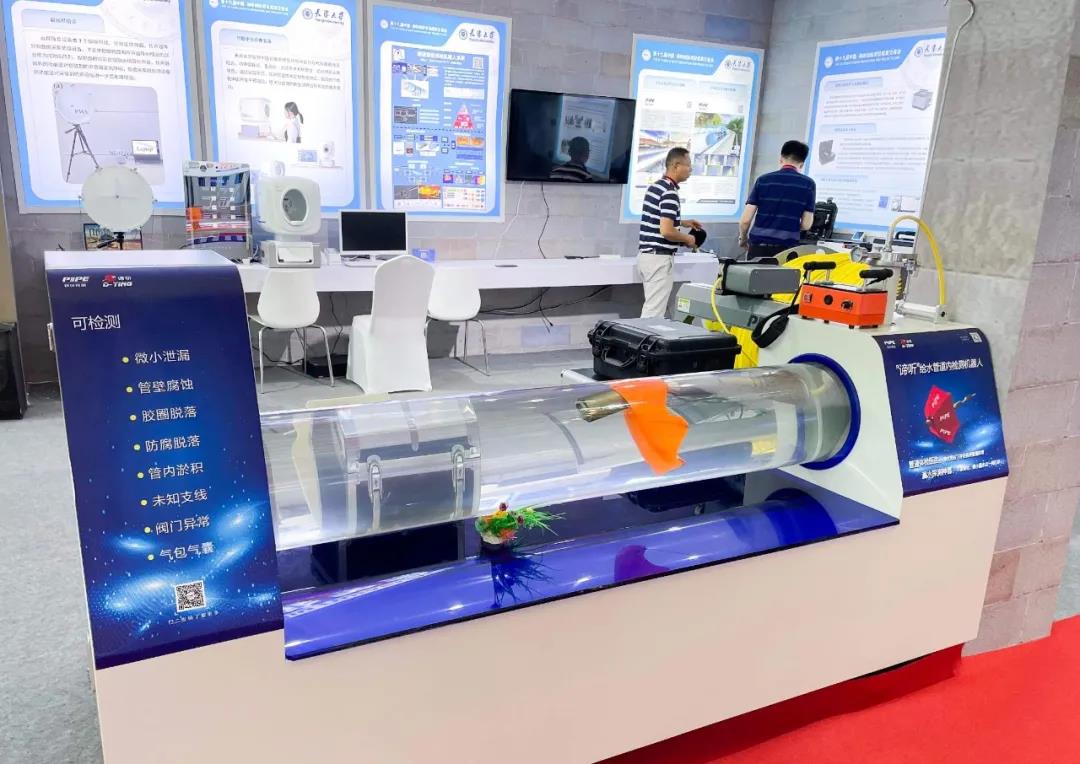 天津大學展區 在創新成果展區,天津大學作為主賓校參展,帶來了智能中醫診斷裝備、給水管道內檢測機器人、新型隧道智能巡檢機器人、超遠程拾音等多項科技創新成果在海創會平臺上進行分享交流。 給水管道內檢測機器人