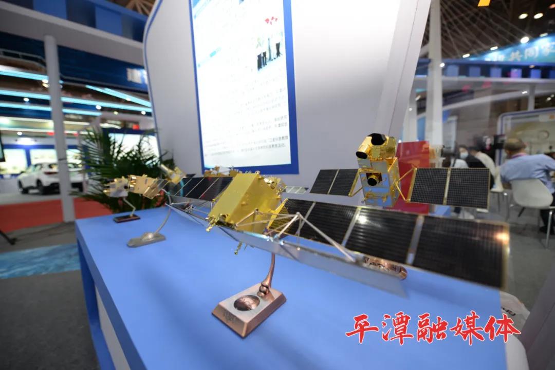 展館展出的民用遙感衛星模型 另外,為促進新能源產業鏈發展,還邀請了致力于海洋多維開發于一體的中國廣核新能源集團和海洋工程企業正力海工,它們分別帶來位于平潭新能源開發項目的演示沙盤和“順一1600”深潛坐底多功能風電工程船。