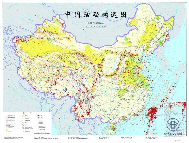 中國活動構(gòu)造圖,可見6級以上地震與活動構(gòu)造密切相關(guān)。 |