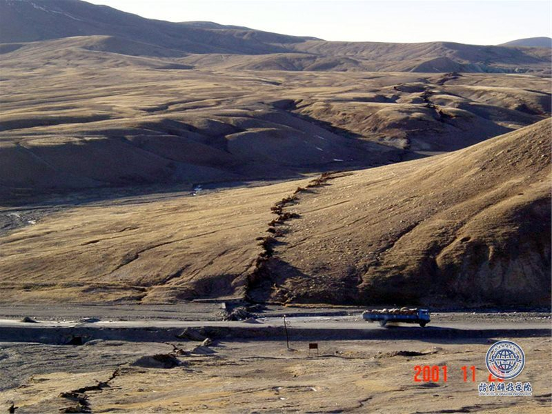 2001年中國昆侖山口西8.1級地震發(fā)震斷層的主地面破裂帶長350 km,寬度達600 m,最大水平錯動7.6 m,最大垂直位移2 m,間隔50 km空區(qū)以西的次破裂帶長26 km。