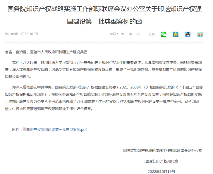 日前,按照國務院知識產權戰略實施工作部際聯席會第五次全體會議部署,國務院知識產權戰略實施工作部際聯席會議辦公室從全國范圍內選取了25個成效較為突出的案例,作為知識產權強國建設第一批典型案例,印送各地在推進知識產權強國建設工作中綜合借鑒。省市場監管局報送的《福建省高標準建設“知創福建”知識產權公共服務平臺》成功入選。